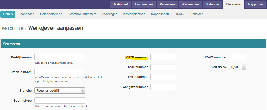 CRIB nummer werkgever invullen: