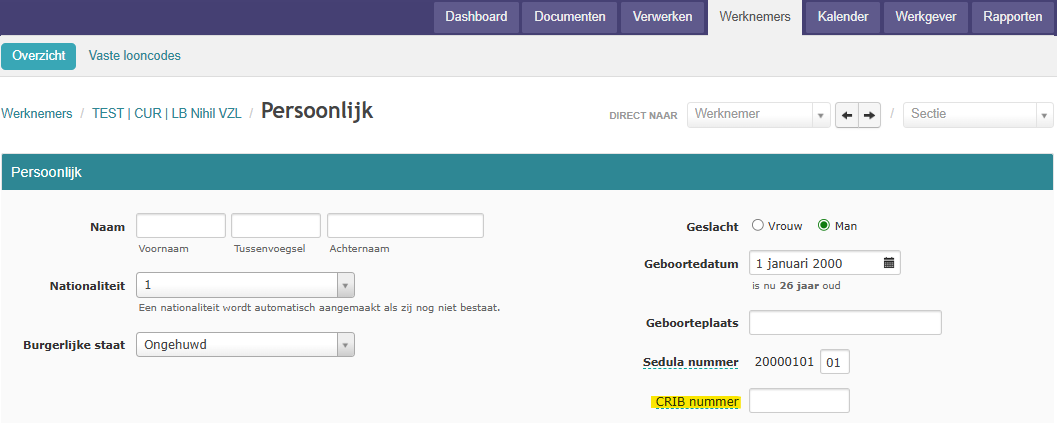CRIB nummer werknemer invullen: